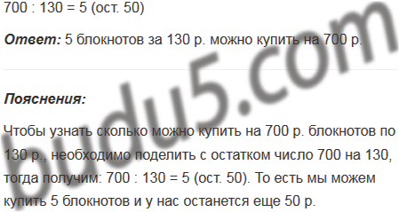 Блокнот стоит 130 р. Сколько блокнотов можно купить на 700 р.?