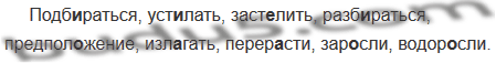 Подб..раться, уст..лать, заст..лить, разб..раться, предпол..жение, изл..гать, перер..сти, зар..сли, водор..сли.