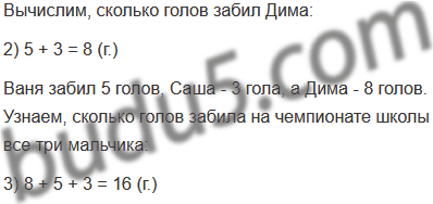 а) На чемпионате школы по футболу Ваня забил 5 голов, Саша - на 2 гола меньше, чем Ваня, а Дима забил столько голов, сколько Ваня и Саша вместе. Сколько голов забили на чемпионате школы все три мальчика?