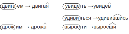 крикнуть + -в- → крикнув; принести + -ши- → принёсши; умыться + -вши- → умывшись.